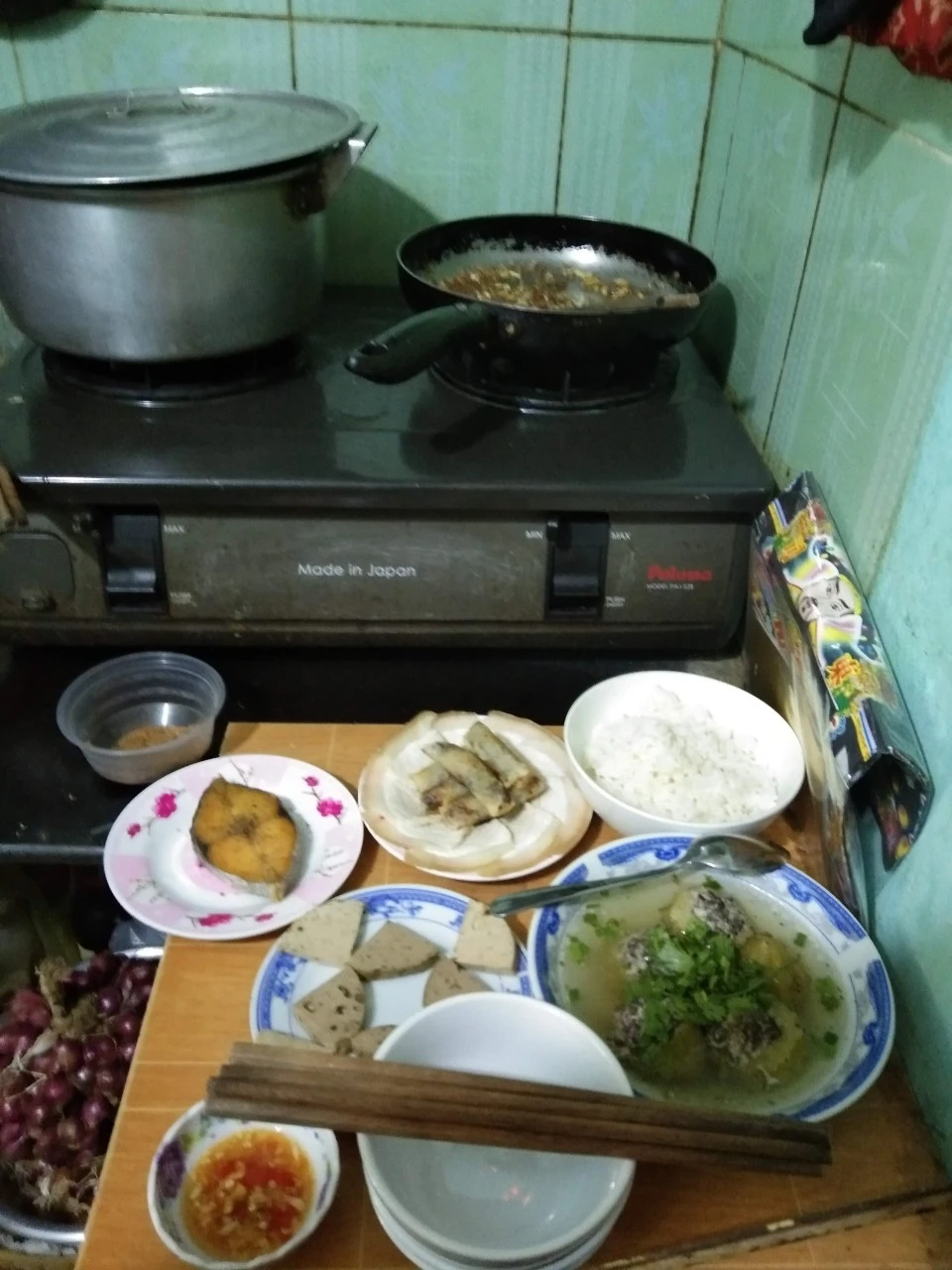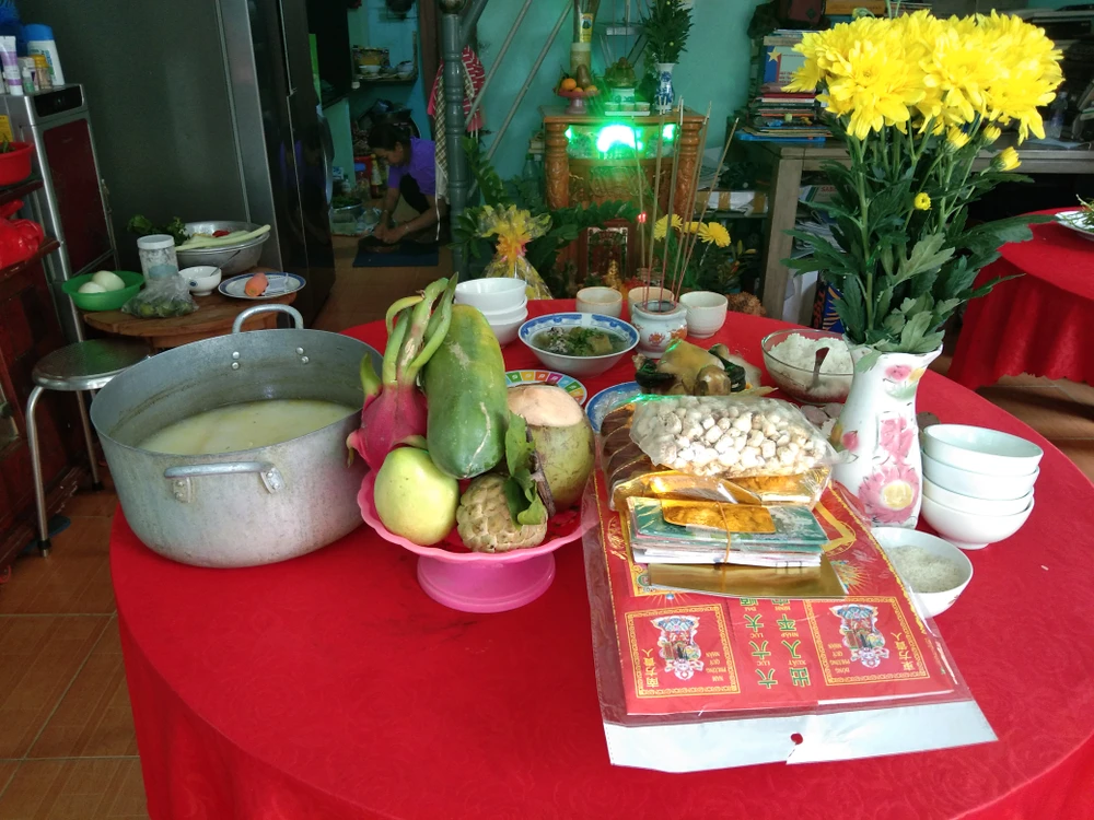 Mâm mặn cúng trước nhà.