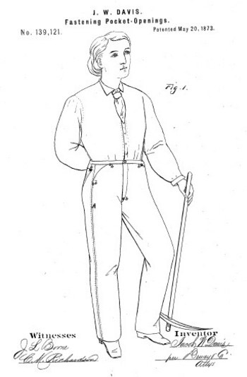 Những chiếc đinh tán được coi là thứ không thể thiếu ở quần Jeans cho đến nay. Người đặt may những chiếc quần đó rất nhiều. Jacob David rất muốn đăng ký phát minh đơn giản mà có giá trị này nhưng ông thợ may nghèo không có đủ tiền để đóng phí đăng ký bản quyền. Mức phí 68 USD ngày nay chưa chắc đã mua được một chiếc quần Levi's loại tốt nhưng cách đây hơn 130 năm lại là một tài sản rất lớn. Một chiếc quần jeans lúc đó chỉ được bán với vài chục cent mà thôi, quá rẻ! Năm 1872, Jacob David đã gặp Levi Strauss đề nghị hợp tác nếu Levi Strauss bỏ tiền đăng ký bản quyền cho phát minh đóng đinh tán vào các mép túi quần jeans. Trước cơ hội kinh doanh bất ngờ, Levi Strauss đã đồng ý ngay và lịch sử của chiếc quần jeans được ưa chuộng khắp thế giới chính thức bắt đầu từ đó. Những chiếc quần jeans màu xanh củaLevi Strauss gần như không có mấy thay đổi cho đến nay.