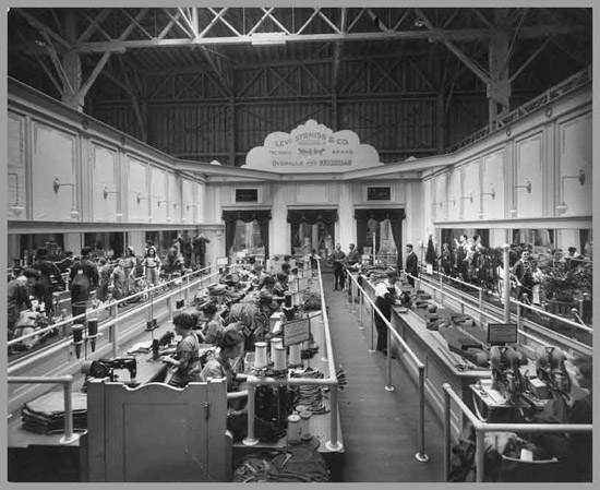 Một xưởng sản xuất của Levi, lúc này đã là công ty Levi's Strauss. Cơ sở may cũ Levi Strauss giao cho Jacob David quản lý, còn ông đi mở các cơ sở mới. Lần lượt một, hai rồi ba nhà máy may quần jeans đã được mở ở San Francisco và vùng lân cận. Levi Strauss đã có ý thức về xây dựng thương hiệu rất sớm. Để tạo ra sự khác biệt dễ thấy giữa quần jeans Levi's và các hãng khác, Levi Strauss đã nghĩ đến việc gắn cho chiếc quần một cái mác ấn tượng. Chiếc mác quần Levi's bằng da mà ngày nay người ta vẫn thấy trong mỗi chiếc quần Levi's đã có từ năm 1886. Khi đó Levi Strauss đã dùng hình ảnh 2 con ngựa đang giằng kéo một chiếc quần jeans ở giữa để chứng tỏ sự chắc chắn, bền lâu của sản phẩm quần bò. Những chiếc mác nổi tiếng này được in bằng màu đỏ nhạt hay màu da cam là phần không thể thiếu được của quần jeansLevi's. Thương hiệu Levi's nổi tiến tới mức một chiếc quần được may cách đây hơn 120 năm, giá bán khi đó là 1 USD thì nay được bán đấu giá ở mức là 46.532 USD. Kỷ lục này năm 2001 đã được ghi nhận là kỷ lục Guinness cho giá một chiếc quần jeans.