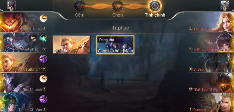 - Quá trình cấm sẽ bắt đầu khi tìm trận đấu thành công và 10 người chơi nhấn sẵn sàng.