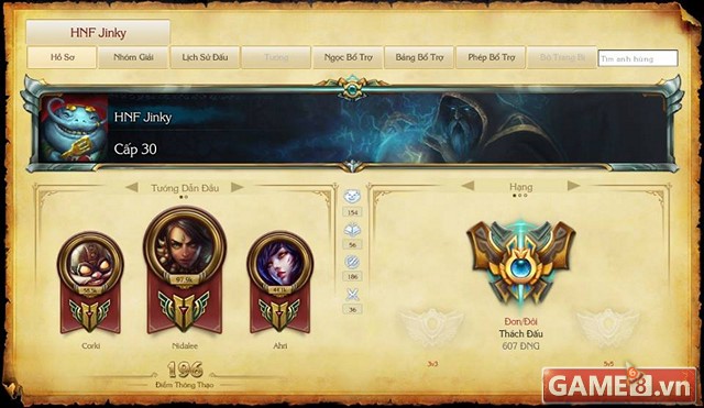 Bất đầu chơi LMHT từ mùa 2 và giờ đã là mùa 6, Jinky đã có 5 năm liên tiếp leo đến được bậc Thách đấu của rank Việt. Thế mới biết kĩ năng của Jinky tại máy chủ Việt Nam là cao thế nào, mặc dù Jinky luôn trung thành chơi cho Fate nhưng vinh quang đến với Jinky cùng đội tuyển là chưa bao nhiêu.