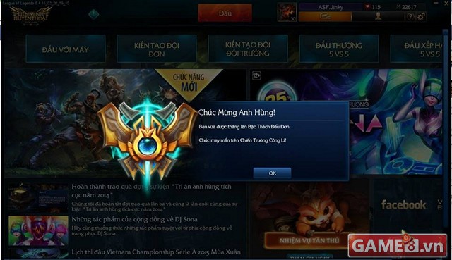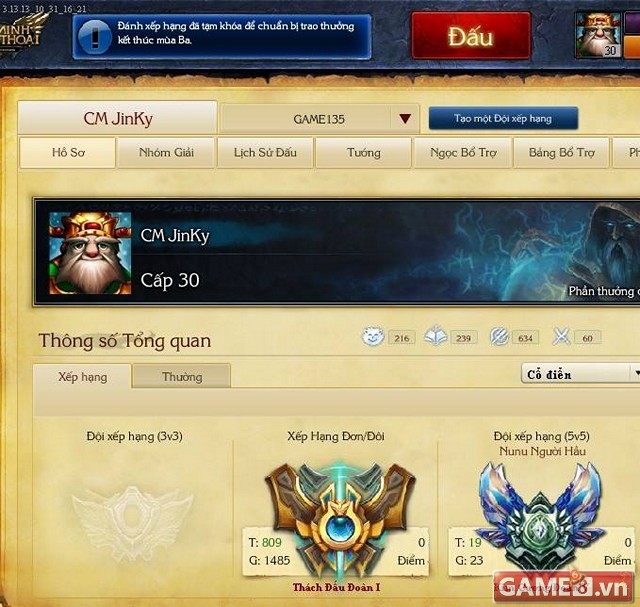 Mùa này Jinky đang Thách đấu có thứ hạng rất cao