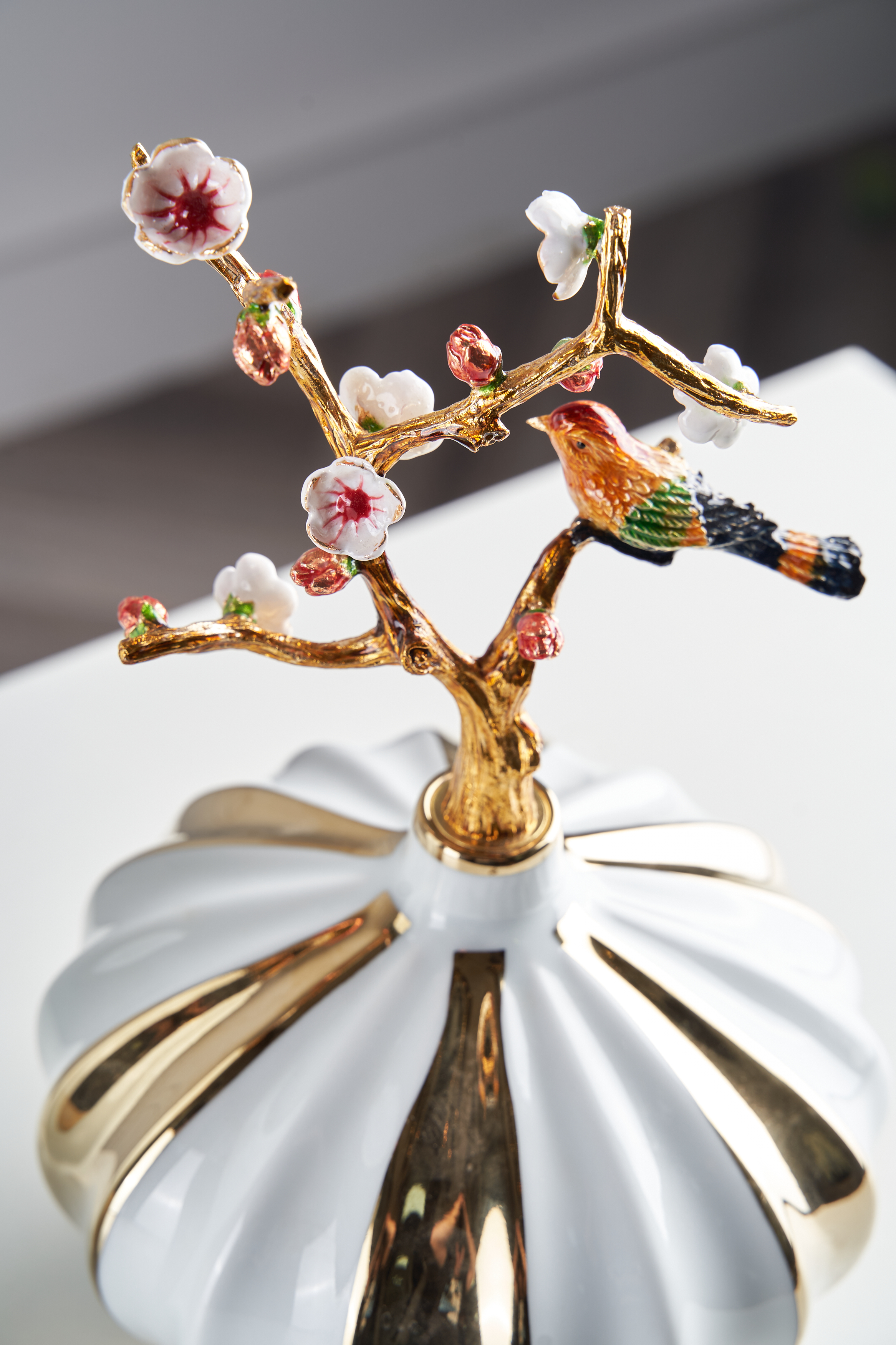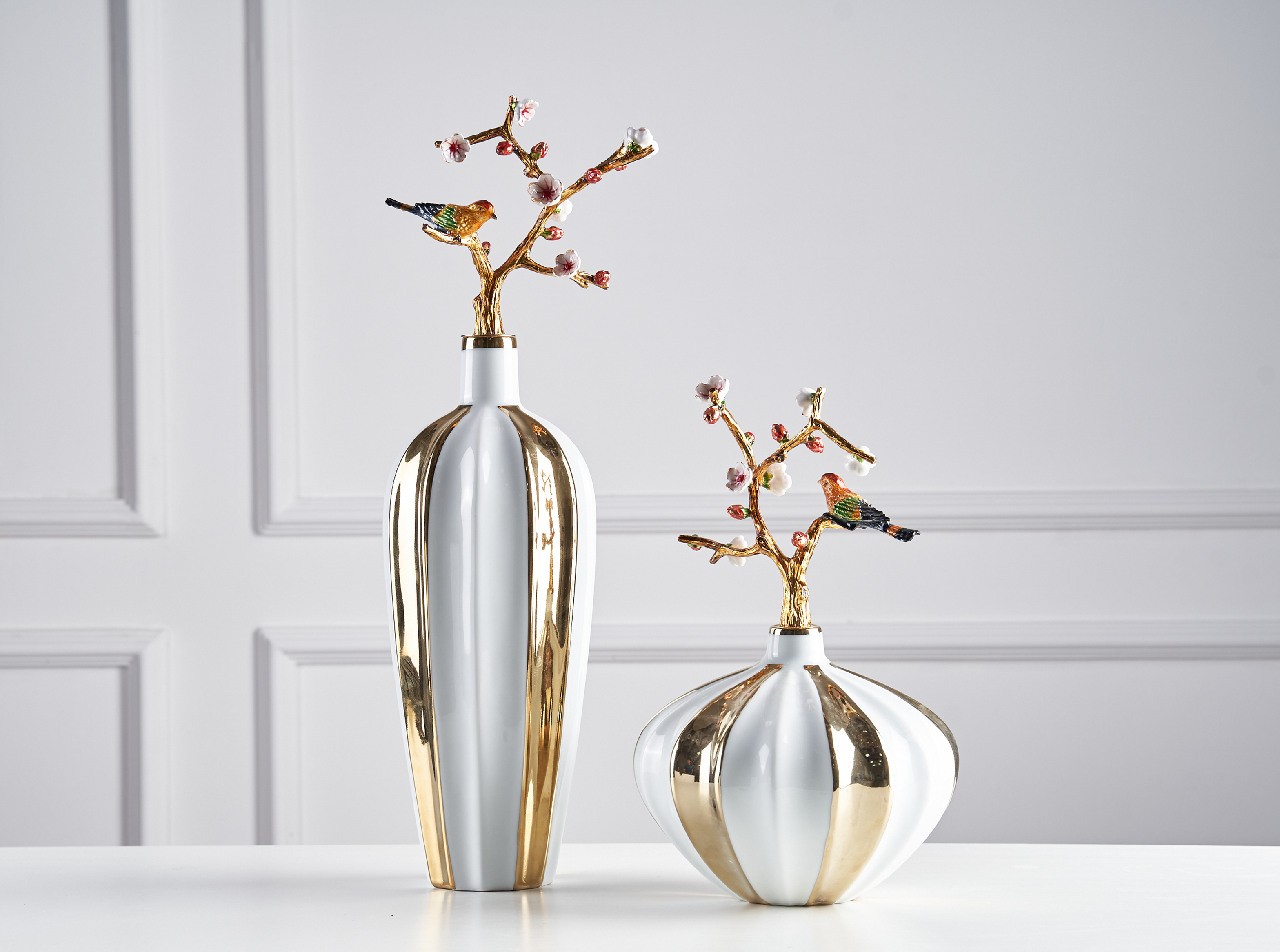 - Lọ hoa sọc vàng trắng thấp