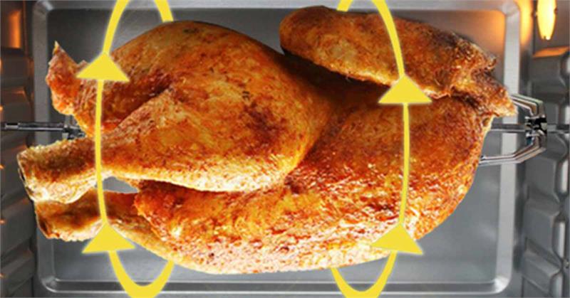 - Thức ăn chín đều và thơm ngon với chức năng xiên quay và quạt đối lưu