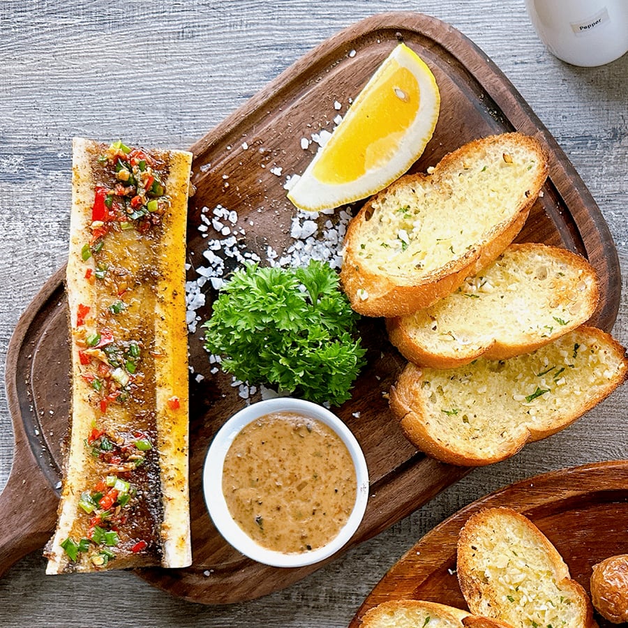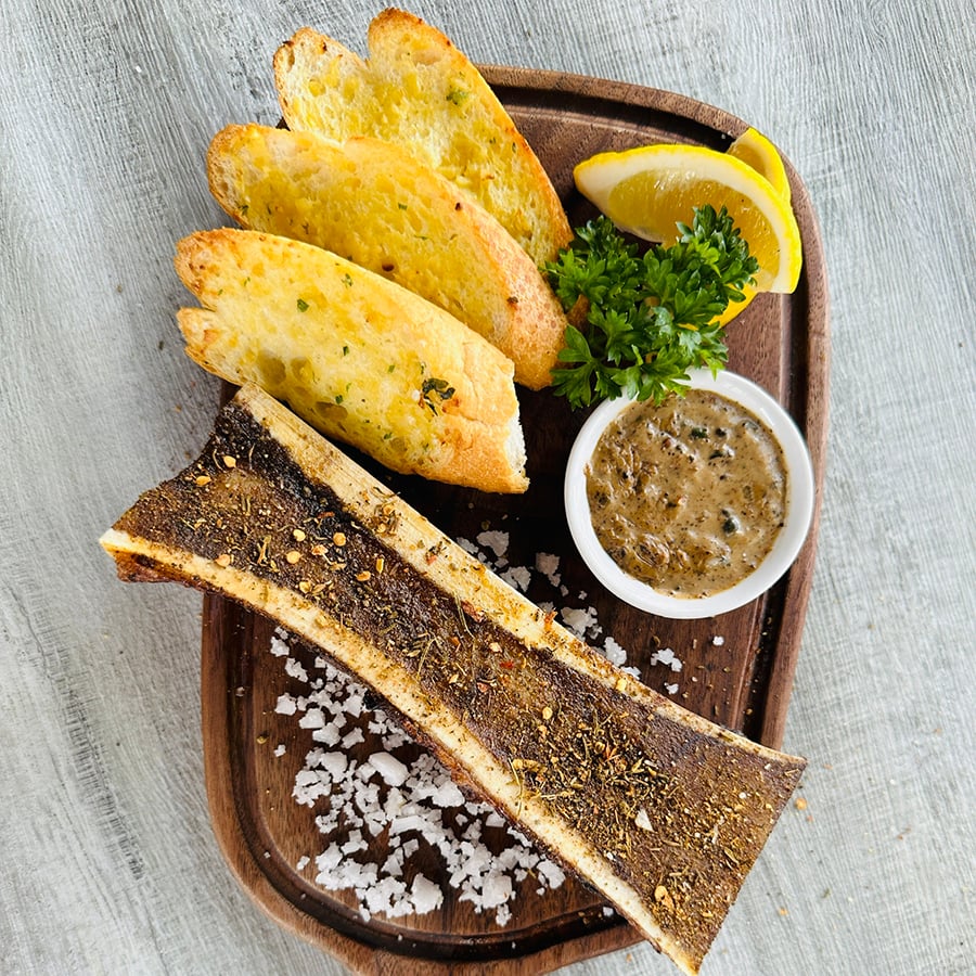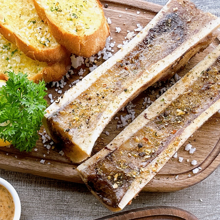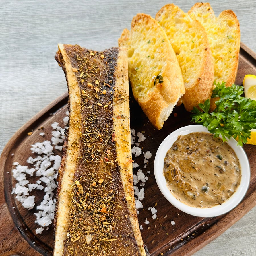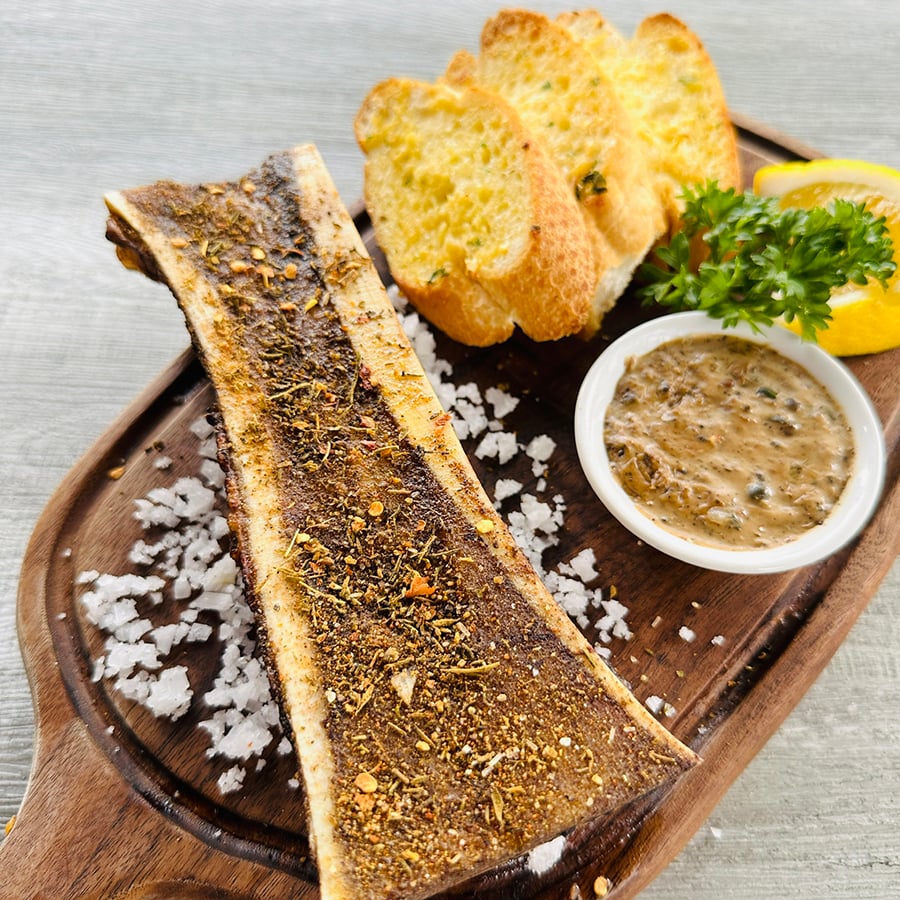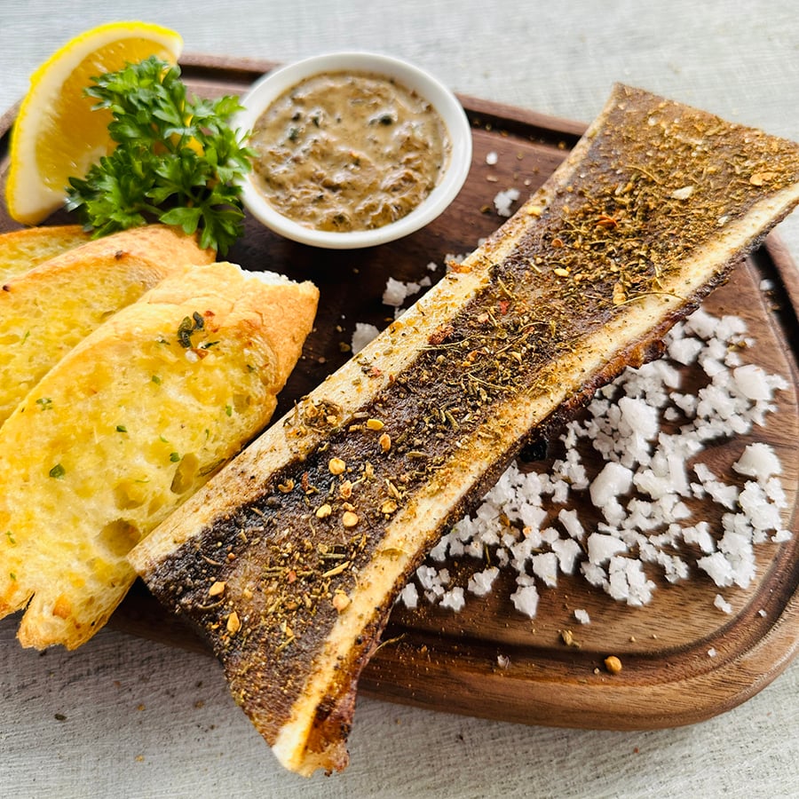1/2 xương ống tủy bò cắt dọc + 3 lát bánh mì nướng + sốt tiêu. Thưởng thức từng miếng tuỷ xương bò chín béo ngậy, tan mềm trên đầu lưỡi cùng sốt tiêu thơm phức.169,000₫ / Cây