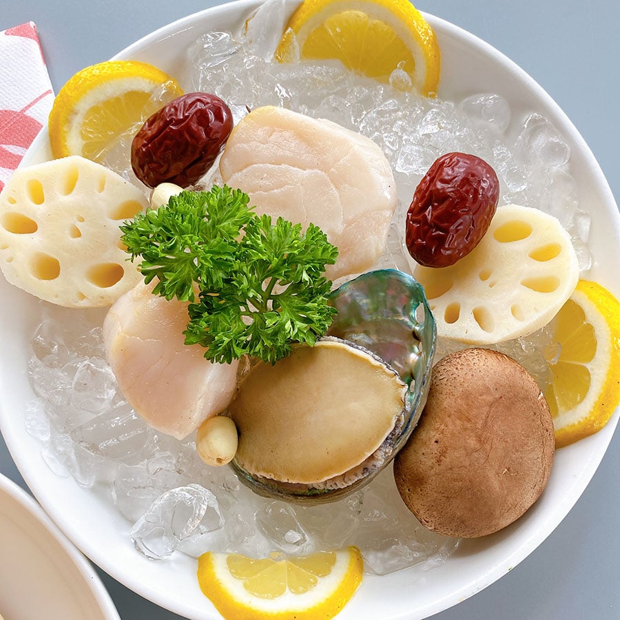 Thành phần gồm: 2 con Bào Ngư, cồi điệp Nhật lớn, 2 tôm sú, táo đỏ, củ sen, hạt sen, nấm đông cô, bông cải xanh. QUÀ TẶNG: 1 Bào Ngư Sốt Dầu Hào Súp thanh mát, vị ngọt tự nhiên của bào ngư làm thố súp ngon và đậm đà hơn, đủ dưỡng chất giúp tăng cường sức khỏe.550,000₫ / Phần