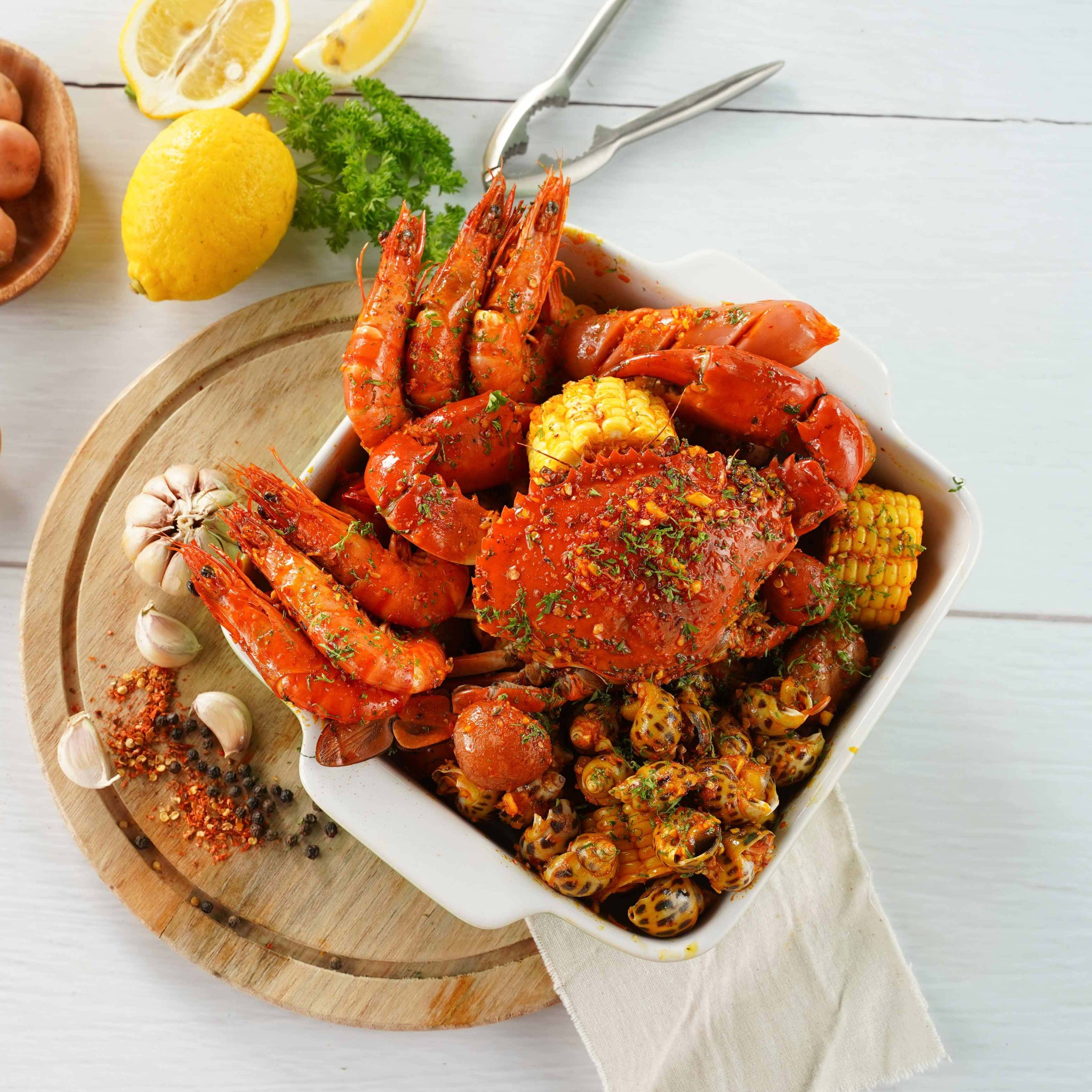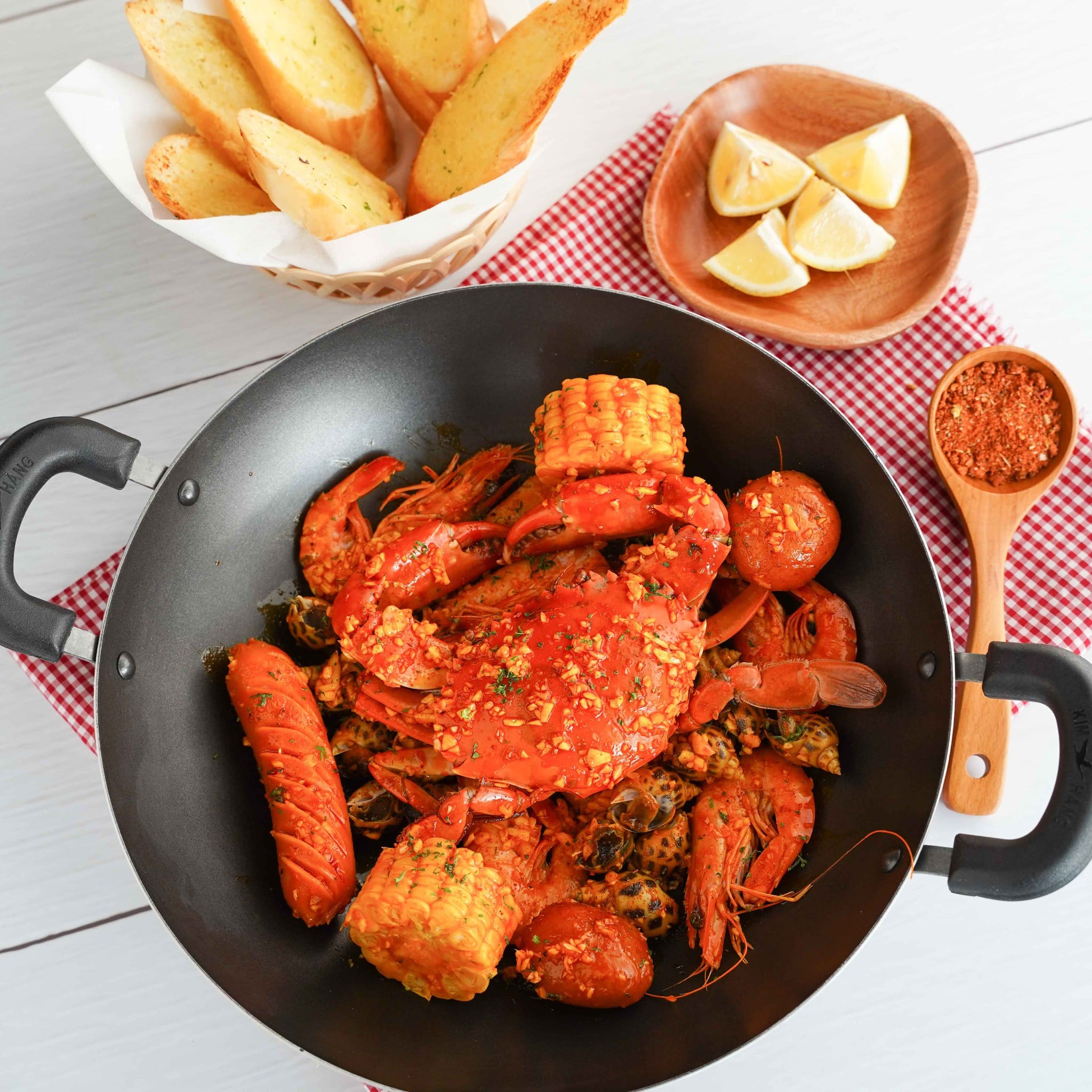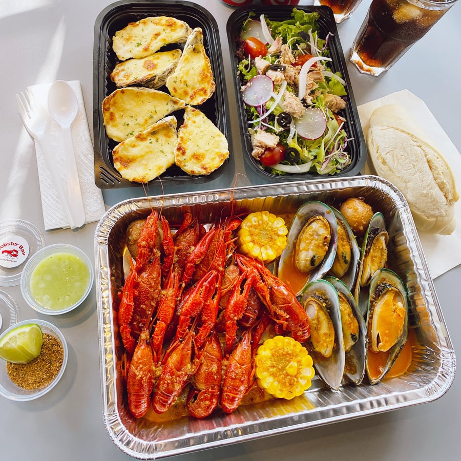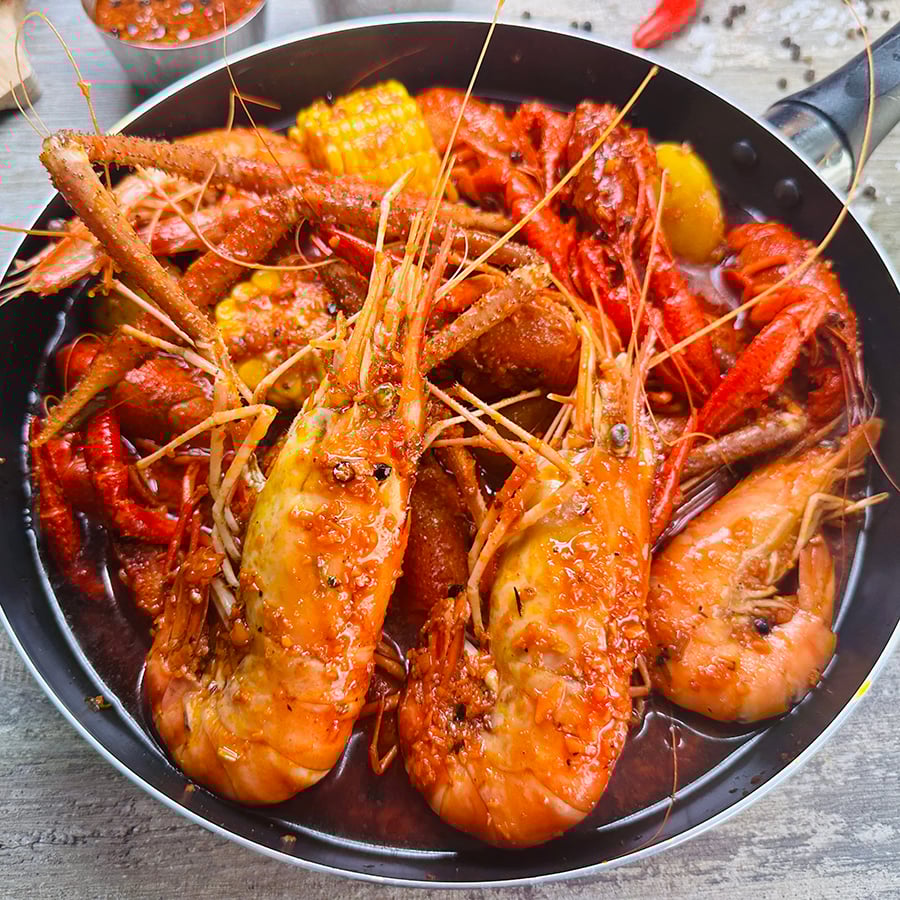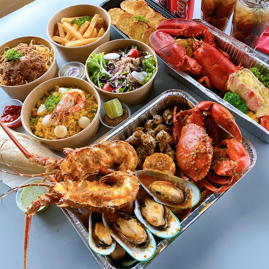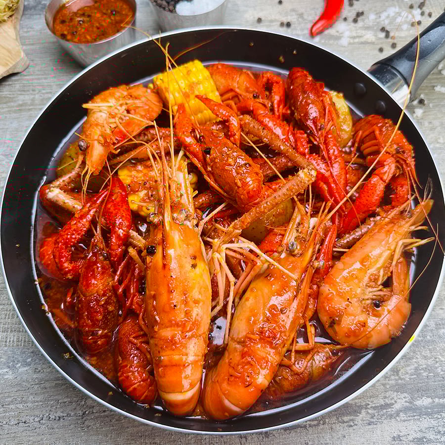 - 3 Phần Salad Cá Ngừ - 4 Phần Tôm Chiên Xù - 3 Hàu Nướng Phô Mai/ Bơ Tỏi/ X.O - 3 Combo 1 Crawfish & Vẹm sốt Cajun/ Bơ Tỏi/Tứ Xuyên/Thái Chanh Sả/Ớt Singapore + Khoai, Bắp & Bánh mì tươi - 2 Combo 4 Ốc Hương sốt Cajun/ Bơ Tỏi/Tứ Xuyên/Thái Chanh Sả/Ớt Singapore + Khoai, Bắp & Bánh mì tươi - 15 Bánh Mì Tươi - 3 Cơm Chiên Sò Điệp - 3 Miến Mực Sốt Xí Muội - 3 Mì Ý Bò Bằm - 8 Coca - 7 Tiger Nâu3,900,000₫ / Phần 4,665,000₫