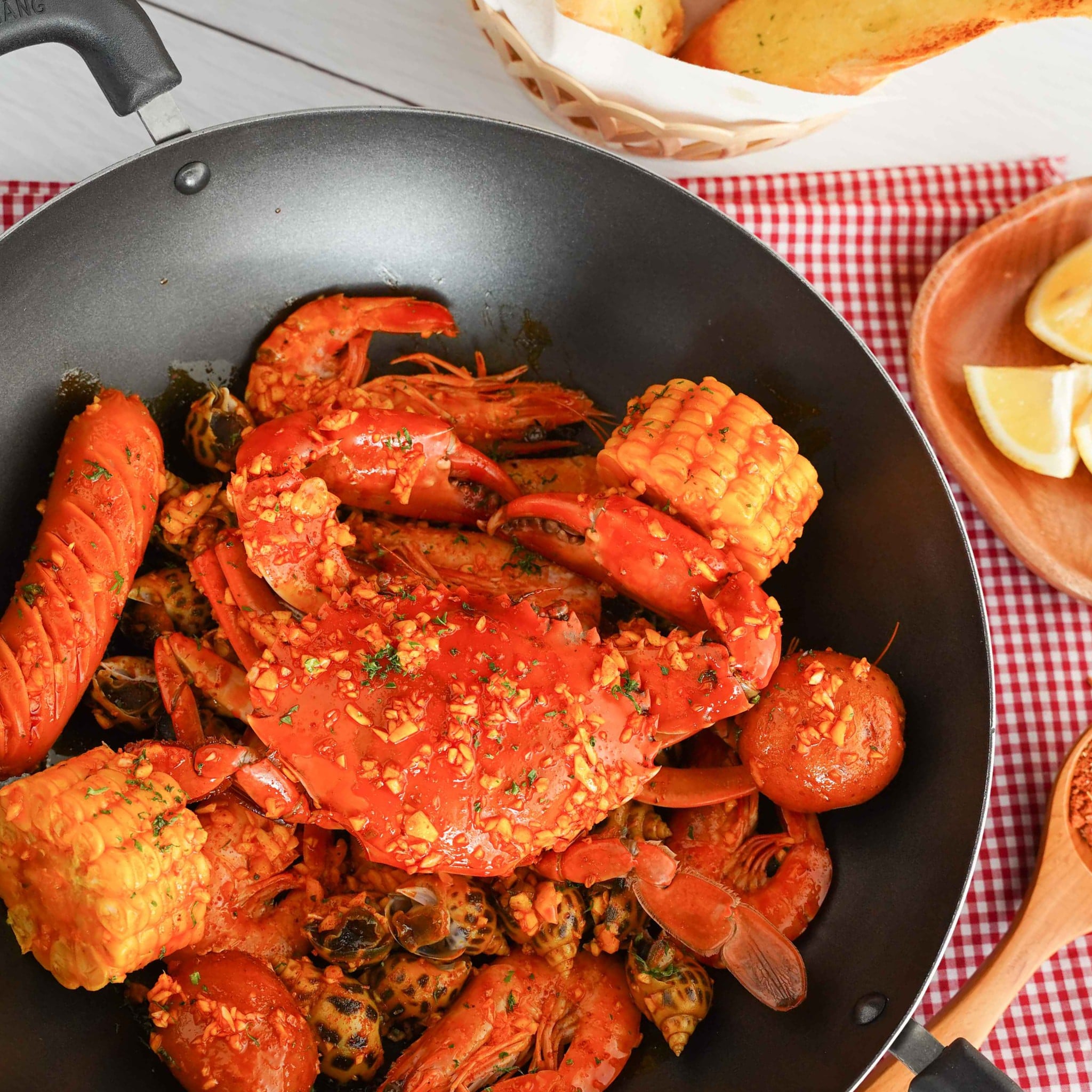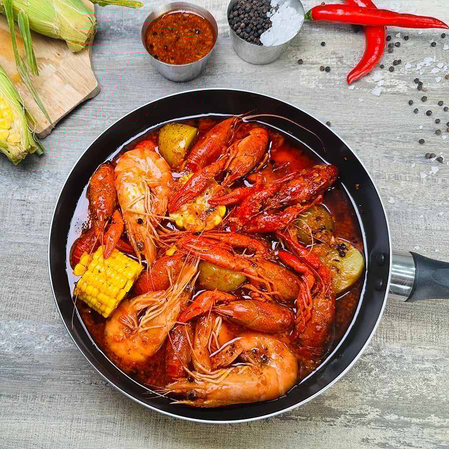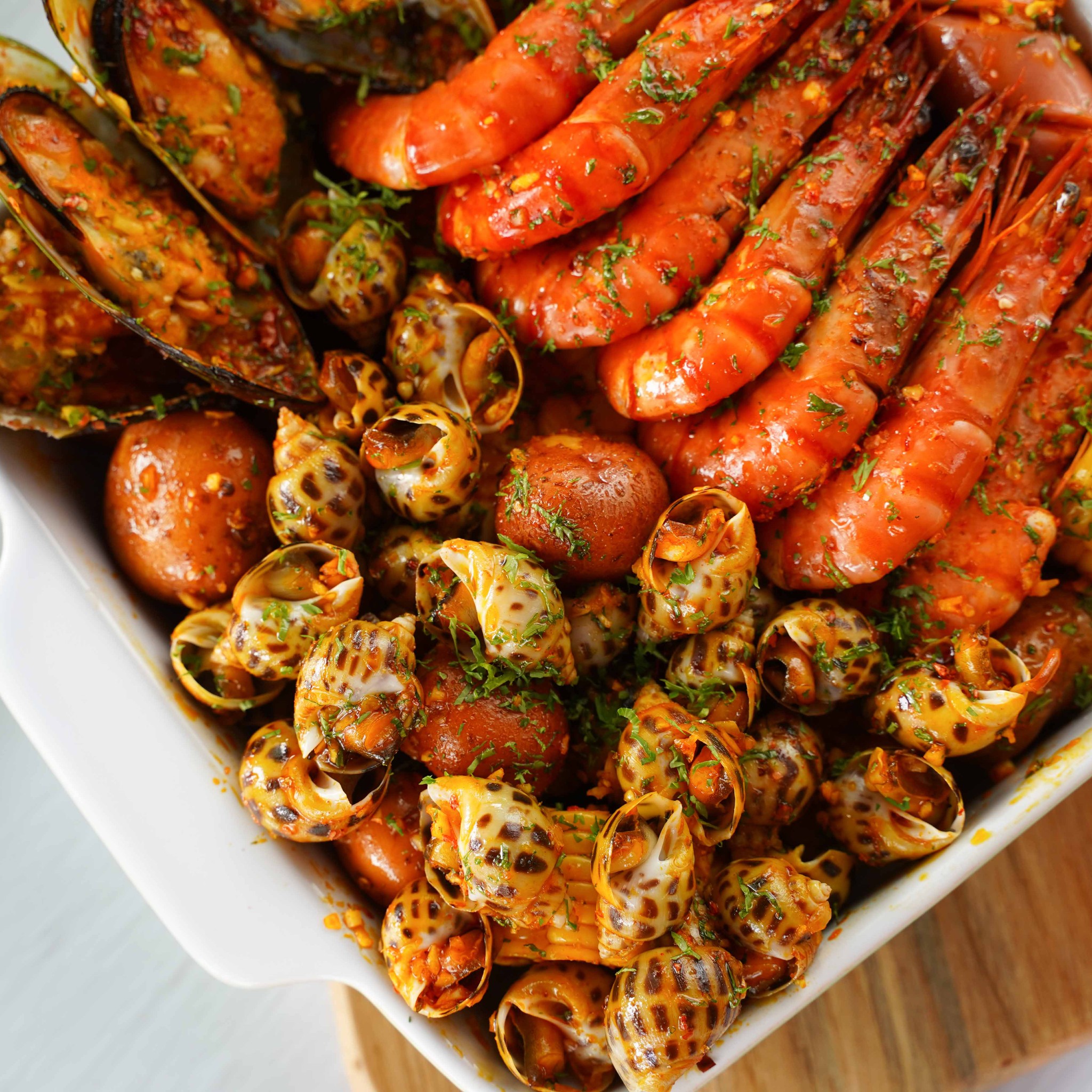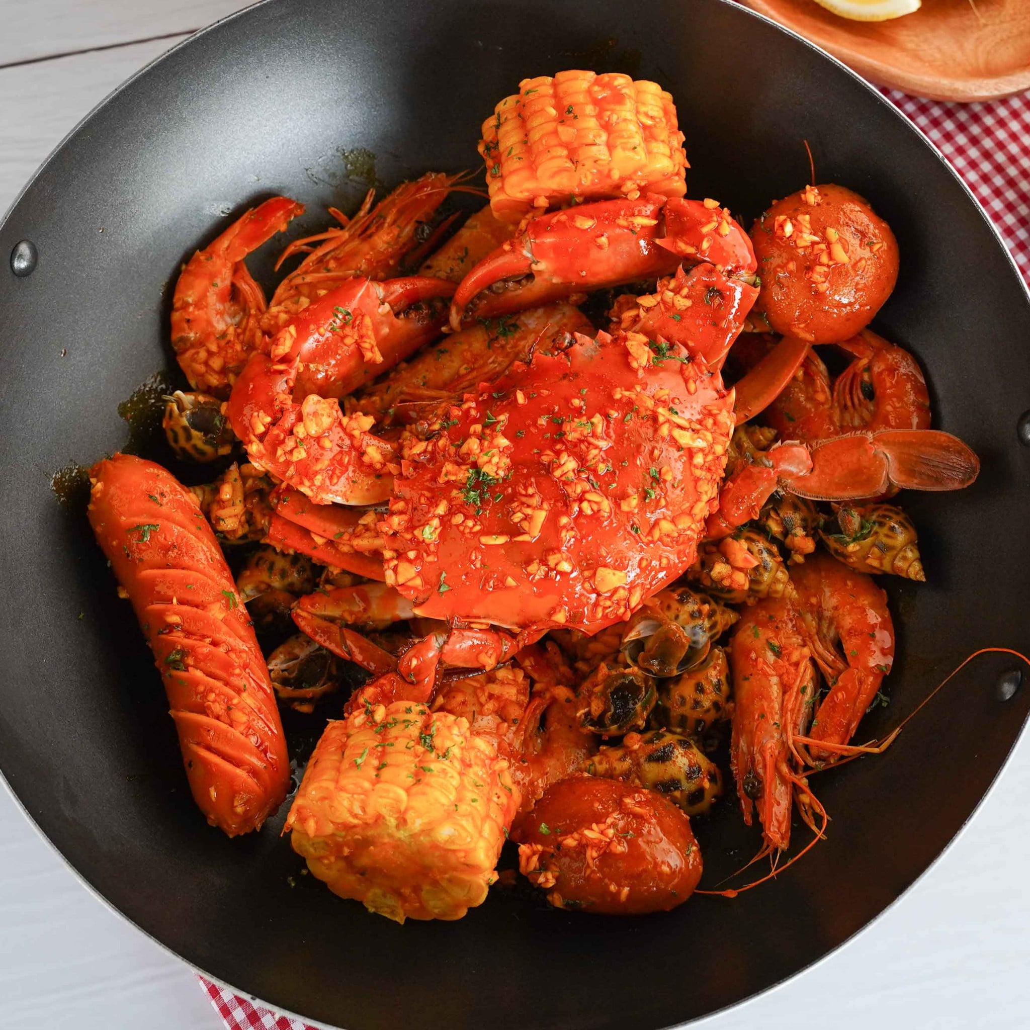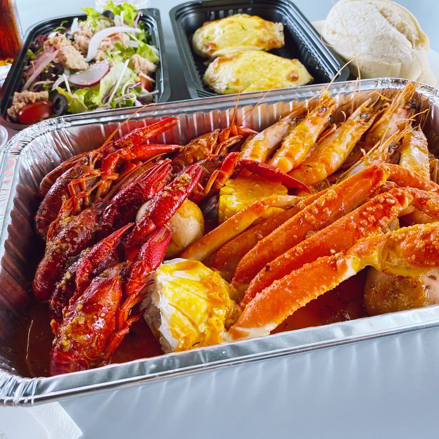- 3 Phần Salad Cá Ngừ - 4 Phần Tôm Chiên Xù - 3 Hàu Nướng Phô Mai/ Bơ Tỏi/ X.O - 3 Combo 1 Crawfish & Vẹm sốt Cajun/ Bơ Tỏi/Tứ Xuyên/Thái Chanh Sả/Ớt Singapore + Khoai, Bắp & Bánh mì tươi - 2 Combo 4 Ốc Hương sốt Cajun/ Bơ Tỏi/Tứ Xuyên/Thái Chanh Sả/Ớt Singapore + Khoai, Bắp & Bánh mì tươi - 15 Bánh Mì Tươi - 3 Cơm Chiên Sò Điệp - 3 Miến Mực Sốt Xí Muội - 3 Mì Ý Bò Bằm - 8 Coca - 7 Tiger Nâu3,900,000₫ / Phần 4,665,000₫