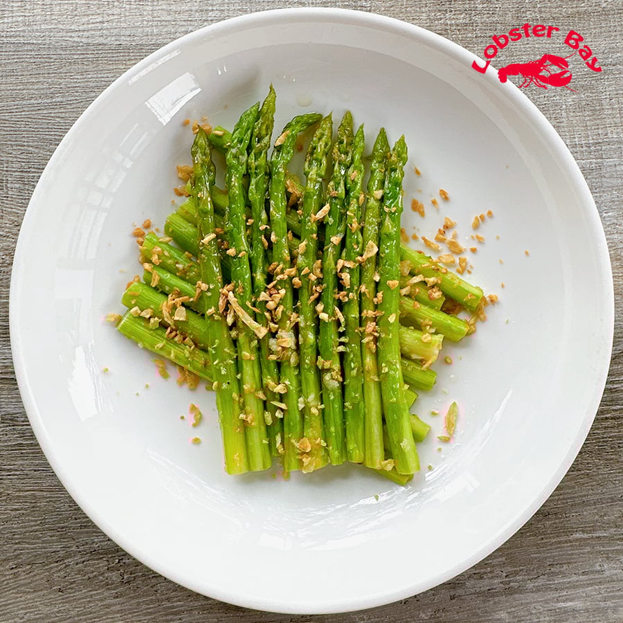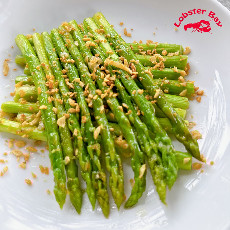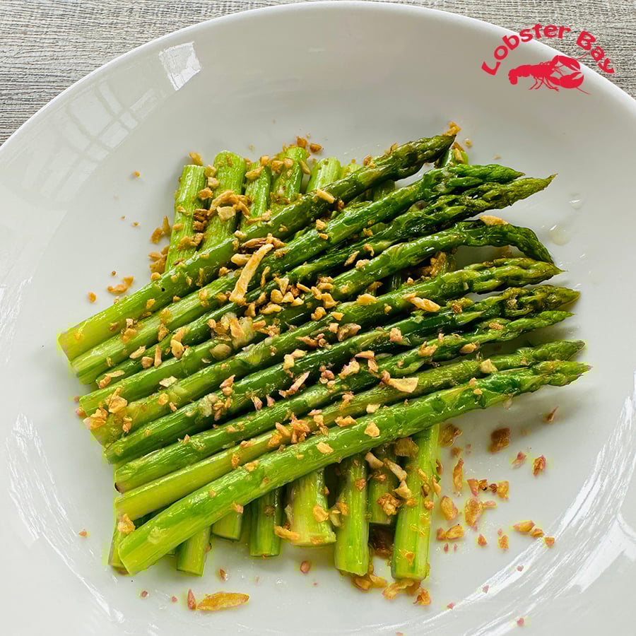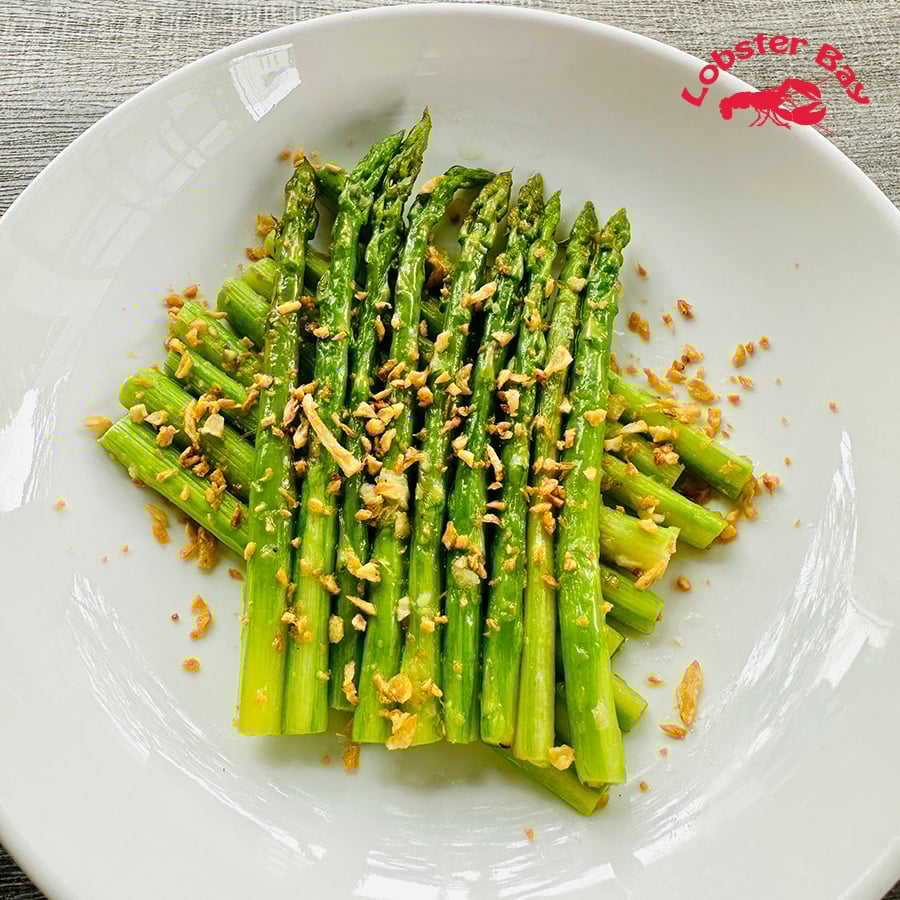 Măng tây ngọt chứa nhiều dưỡng chất tốt cho sức khỏe, chế biến xào tỏi thơm phức là món ăn kèm hấp dẫn cho tất cả các món tại Lobster Bay.89,000₫ / Phần