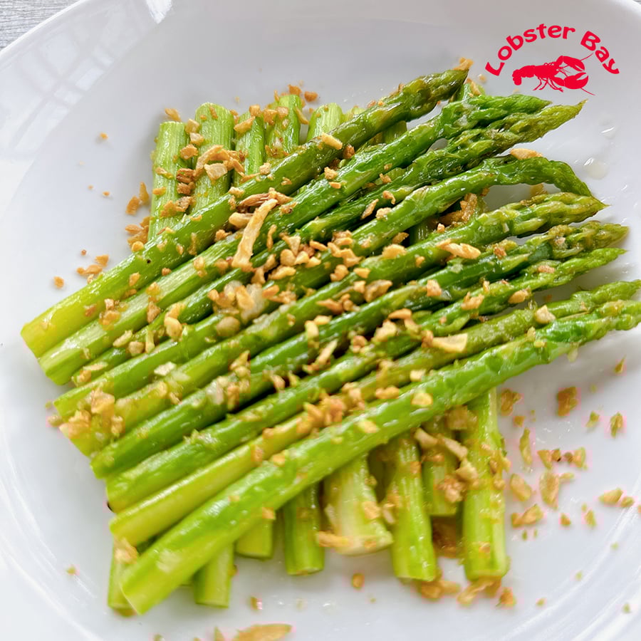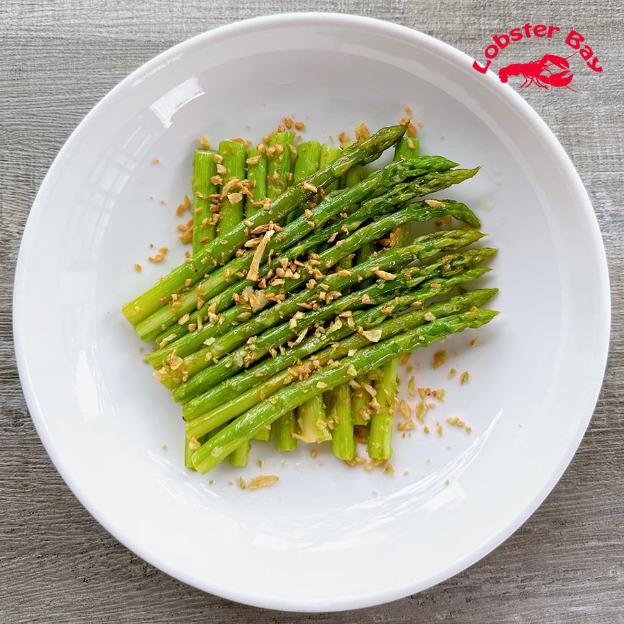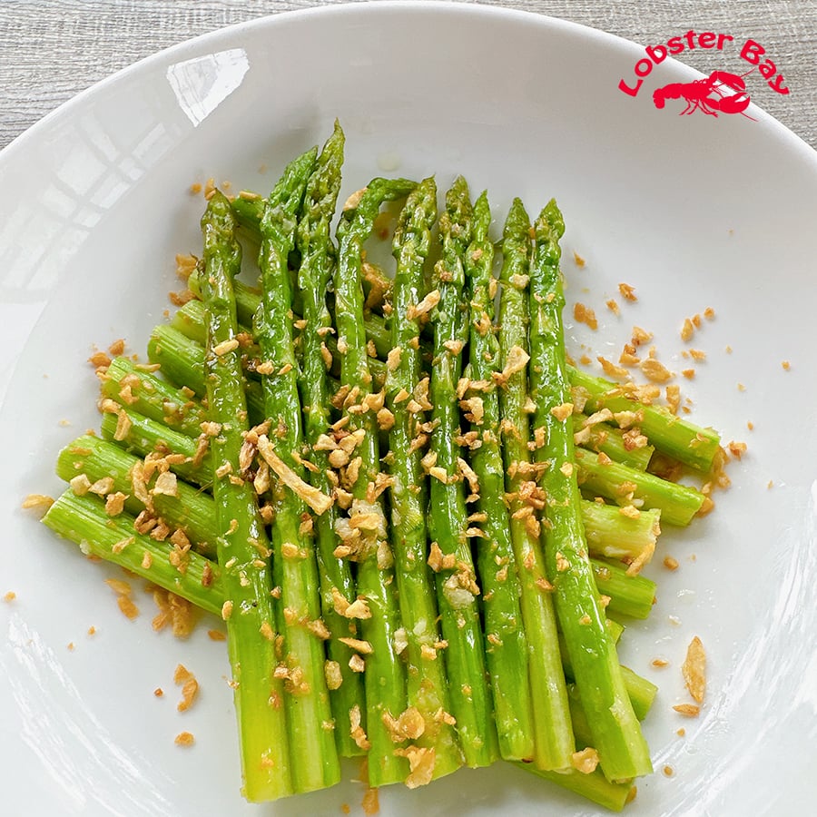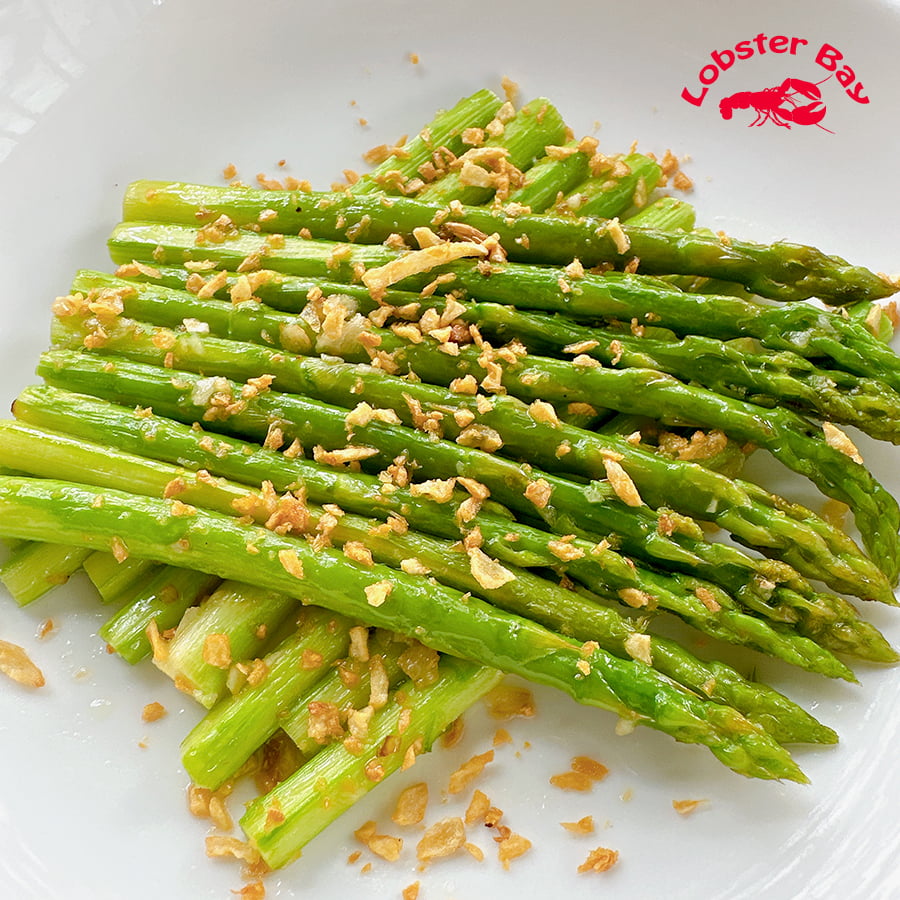 Măng tây ngọt chứa nhiều dưỡng chất tốt cho sức khỏe, chế biến xào tỏi thơm phức là món ăn kèm hấp dẫn cho tất cả các món tại Lobster Bay.89,000₫ / Phần