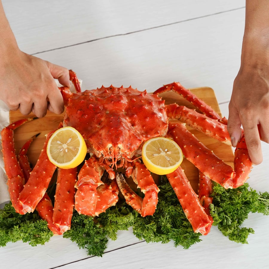 Cua KingCrab Nguyên Con Chế Biến 4 Món + Tặng 1 Tôm Hùm Alaska size 500gram