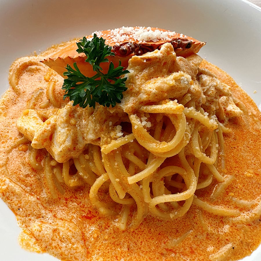 Thành phần món gồm: Mì Ý dai mềm + Thịt Cua xé giàu dinh dưỡng + Sốt Gạch Cua thơm ngon, béo ngậy. QUÀ TẶNG 1 Phần Xúc Xích Nhật Nướng 255,000₫ / Phần