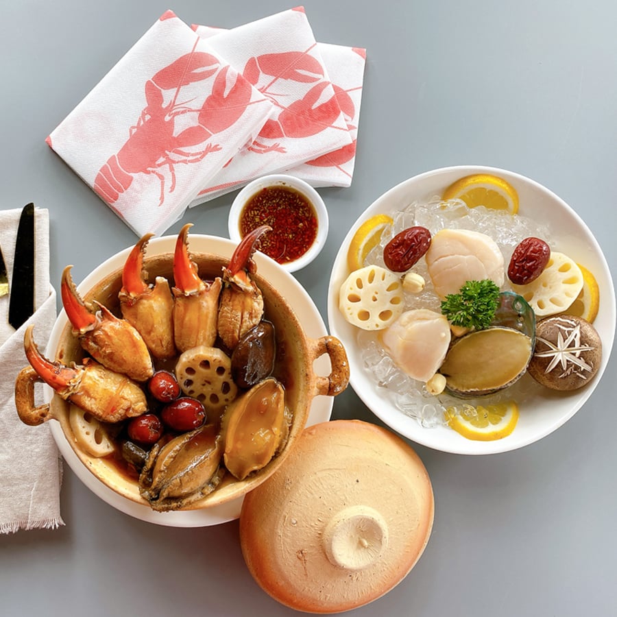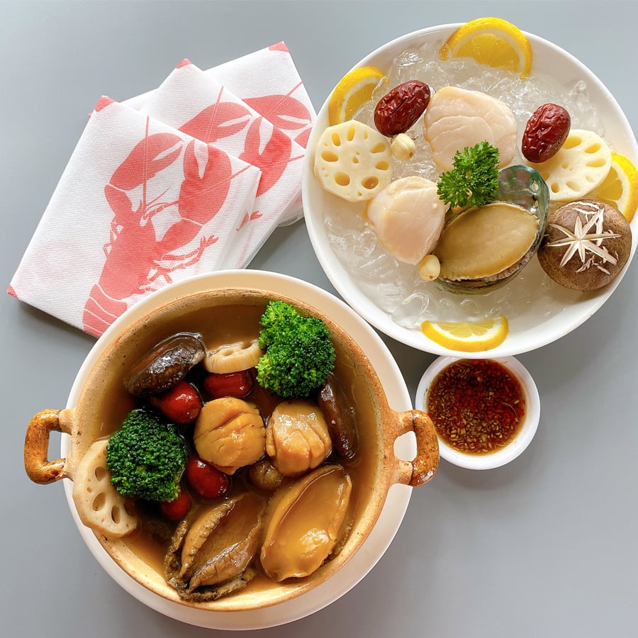 Thành phần gồm: 2 con Bào Ngư, 5 Càng Cua (50gr), 2 tôm sú, táo đỏ, củ sen, hạt sen, nấm đông cô... QUÀ TẶNG: 1 Bào Ngư Sốt Dầu Hào Nước dùng thanh mát kết hợp với càng cua thượng hạng, vị ngọt đậm đà tự nhiên của bào ngư hòa quyện lại tạo nên 1 món ăn bổ dưỡng, đầy đủ dưỡng chất có lợi giúp tăng cường sức khỏe, bồi bổ cơ thể.745,000₫ / Phần
