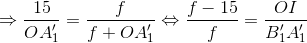 Gọi O và O’ là hai vị trí quang tâm trên trục chính: OO’ = 15(cm)