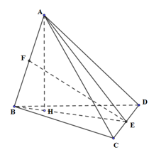 Thể tích khối tứ diện ABCD: \(V = \frac{1}{3}AH.{S_{\Delta BCD}} = \frac{1}{3}.\frac{{\sqrt {{b^2} - \frac{{{a^2}}}{2}} .a}}{{\sqrt {{b^2} - \frac{{{a^2}}}{4}} }}.\frac{1}{2}.\sqrt {{b^2} - \frac{{{a^2}}}{4}} .a = \frac{{{a^2}\sqrt {{b^2} - \frac{{{a^2}}}{2}} }}{6}\).