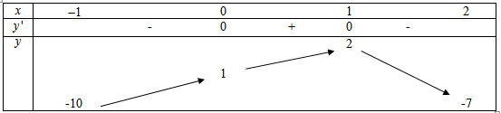 Vậy giá trị lớn nhất, nhỏ nhất của hàm trên \(\left[ { - 1;2} \right]\) lần lượt là \(2\) và \( - 10\)