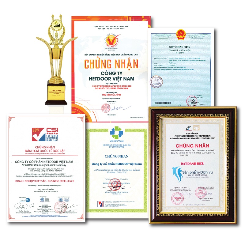 Các sán phẩm NETDOOR có chất lượng vượt trội không chỉ bởi sự khắt khe trong lựa chọn vật liệu đầu vào mà nó còn thể hiện thông qua các đánh giá và kiểm định chất lượng. Sản phẩm tự hào nhận được những chứng nhận và bằng khen uy tín. Đó là sự khẳng định chắc chắn về chất lượng và nguồn gốc sản phẩm.