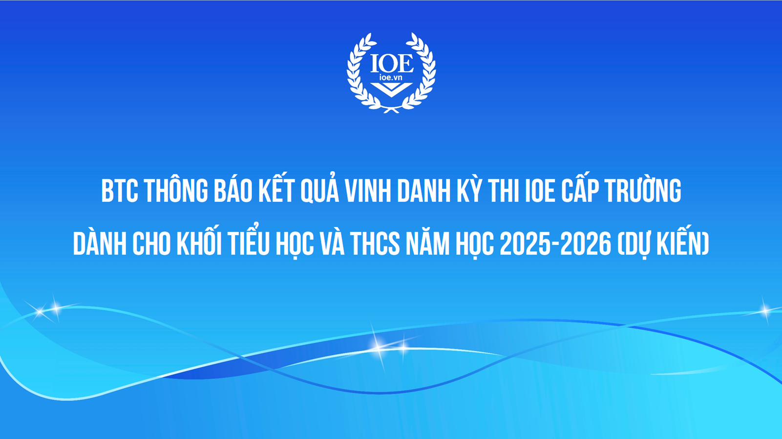 BTC thông báo kết quả vinh danh kỳ thi IOE cấp trường dành cho khối Tiểu học và THCS năm học 2025-2026 (dự kiến)