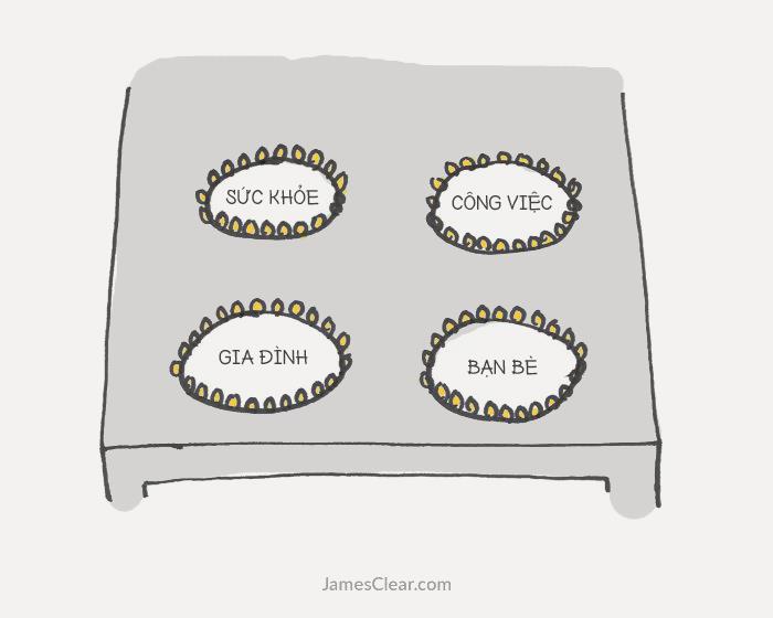 Tưởng tượng cuộc đời bạn được đại diện bởi một chiếc bếp với 4 lò lửa trên đó. Mỗi lò biểu tượng hóa cho một góc quan trọng trong cuộc đời bạn: