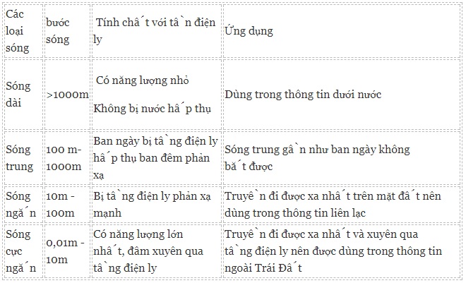 c) Sóng vô tuyến: là sóng điện từ có tần số hàng nghìn Hz trở lên. – Tầng điện ly: cách mặt đất khoảng 80km, chứa nhiều hạt tích điện