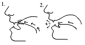 Khi phát âm /b/, vị trí lưỡi và hình miệng hoàn toàn giống với khi phát âm /p/ nhưng không bật hơi, /b/ là phụ âm hữu thanh, dây thanh âm rung khi phát âm.