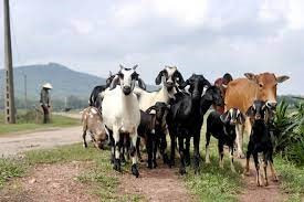 + Dê và bò cùng ăn cỏ trên một cánh đồng.