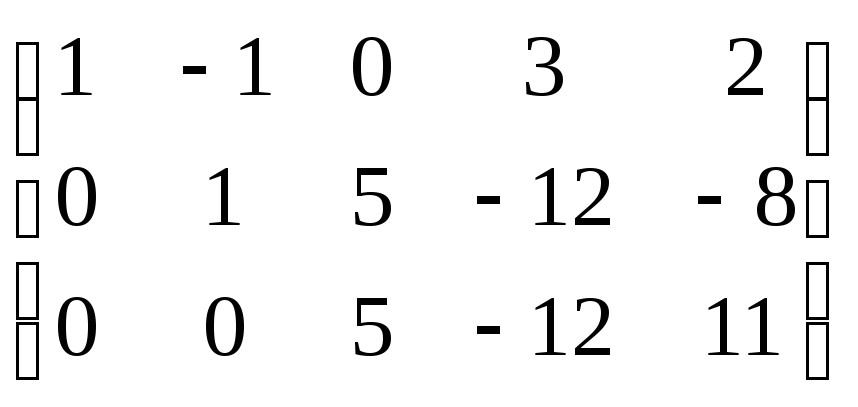 (1) Cột thứ năm bằng 0, chúng tôi xóa nó khỏi ma trận. Do đó, hạng của ma trận nhiều nhất là bốn. Hàng đầu tiên được nhân với -1. Đây là một tính năng đặc trưng khác của phương pháp Gaussian, làm cho hành động sau đây trở nên dễ chịu:
