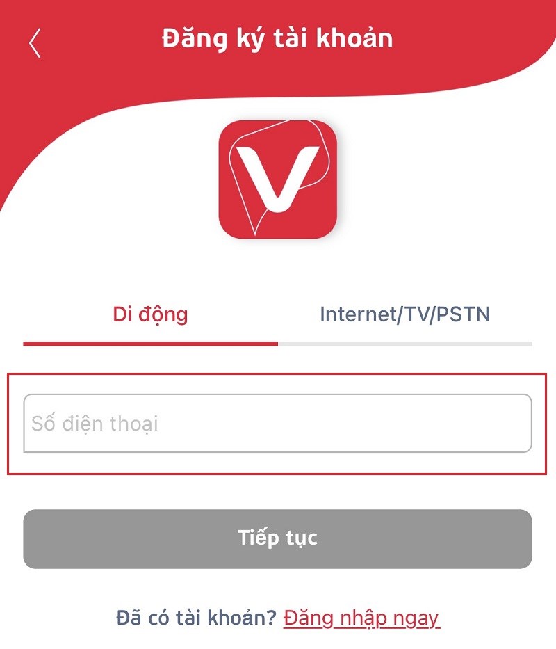 Nhập số điện thoại cá nhân để đăng ký tài khoản My Viettel