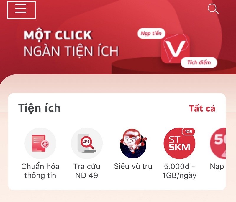 - Bước 1: Mở cửa sổ ứng dụng My Viettel, tại đây bạn chọn biểu tượng hình 3 dấu gạch.