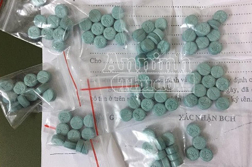 Kết quả giám định cho thấy, 94 viên nén màu xanh là thuốc lắc LV xanh có trọng lượng là 30,842g. 25 gói bột còn lại là ketamin.