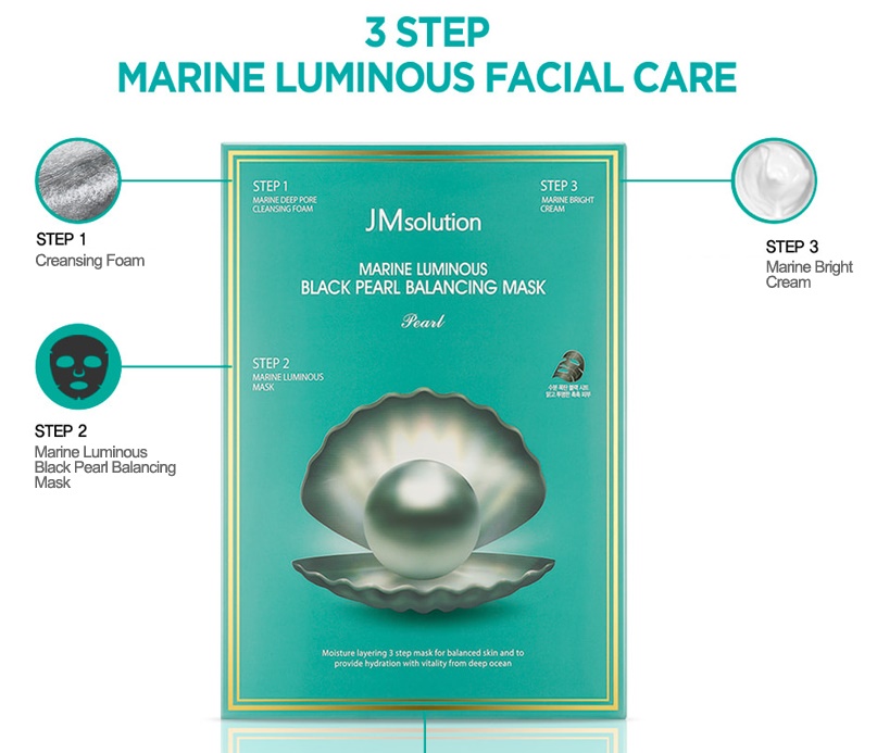 Mặt Nạ Dưỡng Ăm, Trắng Da Ngọc Trai Đen JM Solution Marine Luminous Black Pearl Mask 30ml55.000₫Sản phẩm đã hết hàngBạn có thể xem các sản phẩm tương tự.Xem Sản Phẩm Tương TựMô tả sản phẩmMặt Nạ Dưỡng Ăm, Trắng Da Ngọc Trai Đen JM Solution Marine Luminous Black Pearl Mask 30mlThương hiệu: JMSolutionXuất xứ: Hàn QuốcĐóng gói: 30 ml x 10 miếng (Mỗi miếng 3in1: 1 mask giấy 27ml+ 1 srm 1.5ml + 1 kem dưỡng 1.5ml)JMSolution là thương hiệu mỹ phẩm nội địa Hàn đã rất quen thuộc với cộng đồng làm đẹp và chăm sóc da. Được thành lập năm 2016 và thuộc sở hữu của tỷ phú Kim Jung-woong, thương hiệu mỹ phẩm phân khúc mid-end này nhanh chóng chiếm được lòng tin yêu của phái đẹp bởi hiệu quả của sản phẩm, thành phần an toàn, lành tính và vô cùng dịu nhẹ. Mặt Nạ Chăm Sóc Da Sáng Mịn Chiết Xuất Từ Ngọc Trai Đen Hàn Quốc JMsolution Marine Luminous Black Pearl Balancing Mask gồm ba bước chăm sóc da cơ bản theo tiêu chuẩn của người Hàn Quốc là rửa mặt, đắp mặt nạ và dưỡng ẩm cho da. Sản phẩm được chiết xuất từ ngọc trai đen, một loại nguyên liệu làm đẹp quý hiếm và cho hiệu quả tuyệt vời khi sử dụng. Sản phẩm gồm 3 bước dưỡng gồm Bước 1: Sữa rửa mặt (1.5ml) Sữa rửa mặt tạo bọt mịn giúp làm sạch sâu lỗ chân lông bị tắc, các tạp chất bụi bẩn trên da Bước 2: Mặt nạ (27ml) Mặt nạ ngọc trai đen cân bằng da cung cấp độ ẩm và sức sống từ biển đại dương tạo ra rào cản độ ẩm cho hiệu ứng săn chắc và căng bóng Bước 3: Kem dưỡng sáng da (1.5ml) Kem dưỡng làm da sáng mịn và mượt mà với nước biển sâu Kangwon-do tinh khiết, cung cấp độ ẩm và năng lượng từ biển đại dương. Mang lại làn da sáng bóng. Sản phẩm với 3 bước dưỡng trong 1 sản phẩm tiện lợi, dễ dàng mang theo khi du lịch hoặc công tác CÔNG DỤNG: Sữa Rửa Mặt Marine Deep Pore Cleansing Foam với bột ngọc trai đen giúp lấy đi các bụi bẩn và bã nhờn trên da, làm sạch da và các lỗ chân lông, ngăn ngừa sự hình thành của mụn. Mặt Nạ Marine Luminous Black có thành phần từ ngọc trai đen mang đến sự “kỳ diệu” cho làn da ngay từ lần đầu sử dụng: Với hàm lượng canxi, protein, các vi lượng và acid amin cao có trong ngọc trai đen mang giúp cung cấp rất nhiều dưỡng chất cho da. Da sẽ được dưỡng trắng và sáng lên trông thấy. Làm mờ vết thâm, ngăn chặn sự lão hóa sớm ở da. Vì vậy, làn da không chỉ khỏe mạnh mà còn lấy lại sự trẻ trung rạng ngời. Tinh chất dưỡng ẩm cao mang lại cho làn da sự mịn màng, luôn căng mọng, ẩm mượt và tăng độ đàn hồi cho da Kem Dưỡng Marine Bright Cream có công dụng làm dịu, khóa ẩm cho da giúp nuôi dưỡng da trắng mịn từ sâu bên trong. Hướng dẫn sử dụng Đầu tiên, làm sạch da với sữa rửa mặt Marine Deep Pore Cleansing Foam. Đắp mặt nạ Marine Luminous Black trong 15 – 20 phút để các dưỡng chất hấp thụ vào da tốt nhất. Sau khi đắp mặt nạ xong, dùng kem dưỡng Marine Bright Cream.