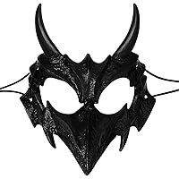 JewelryWe Unisex Gothic Demon Mask: Men Women Black Cosplay Dark Dragon Half Skull Scary Bloody Halloween Decorativ Mask 395,014đ