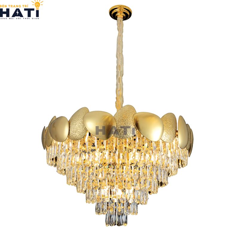 Chất liệu được nhà Hati lựa chọn cho mọi loại đèn thả trần phòng khách đó chính là pha lê K9. Chúng sẽ tăng hiệu quả chiếu sáng và thẩm mỹ tốt với những phong cách thiết kế hiện đại hoặc tân cổ điển.