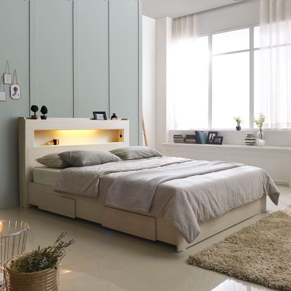 Mẫu giường LED gỗ tự nhiên có ngăn kéo