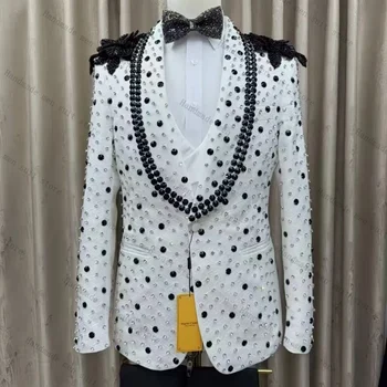 White Men Suit Set 2 Pcs Beaded Blazer+Black Pant Trousers Formal Office Jacket Groom Prom Wedding Tuxedos Customized Coat 2,383,657 ₫ 2,979,571 ₫ -20% (5.0) HOT