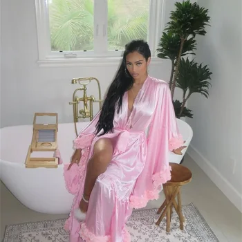 Pink Satin Woman Prom Dress Robes Belt Sexy V Neck Full Sleeves Bridal Robes Evening Gown Wedding Guest Sleepwear Customized 1,500,379 ₫ 1,875,474 ₫ -20% (5.0) HOT