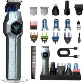 Amazon.com Beard Trimmer for Men, Magnetic Snap-on Replacement Heads & Charging Dock, IPX7 Waterp ...