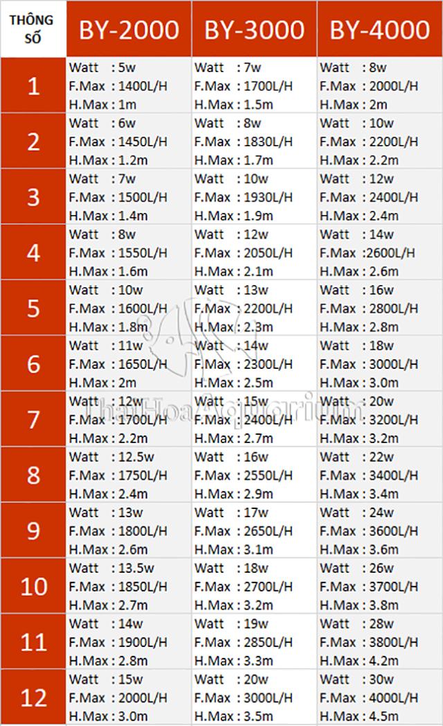 Thông số 12 mức điều chỉnh bơm Baoyu 2000-4000