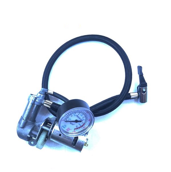 Thông số kỹ thuật của máy bơm cao áp khí nén mini: Điện áp: 12V Dòng không tải: 4.2A Dòng tải tối đa: 6A Nén tối đa tầm 7kg ~ 100psi Bơm kèm vòi đi kèm Pistong hợp kim Đường kính ngoài ống dẫn: 10mm Đường kính trong ống dẫn khí: 5mm Chiều dài ống dẫn: 50cm Đường kính motor: 35mm Chiều dài động cơ: 50mm Trục động cơ: 3mm Độ dài trục: động cơ: 9mm Khối lượng: 500 gram Đồng hồ đo áp xuất Ứng dụng của bơm cao áp khí nén 12V: Bơm khí nén với áp suất cao được sử dụng rộng rãi trong cuộc sống hằng ngày. bơm hơi các loại xe, xì khô đồ vật bằng khí ....