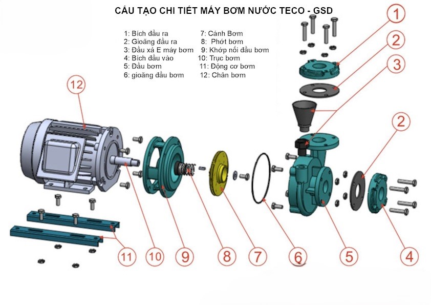 Hình tham khảo cấu tạo của máy bơm nước Teco
