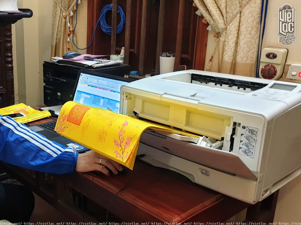 Máy in được kỹ thuật công ty Việt Lạc điều chỉnh để in khổ giấy to hơn khổ mặc định của máy in (in được khổ giấy 30×47 cm, rộng hơn so với khổ giấy A3 29.7×42 thông thường)