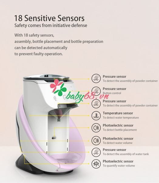 Với 18 cảm biến thông minh được trang bị trên máy, ba mẹ tránh được những sai sót trong quá trình sử dụng.