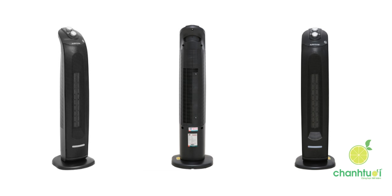 Điểm mình thích ở mẫu này là sự đơn giản và an toàn. Quạt dùng núm xoay cơ học, ai cũng có thể thao tác dễ dàng mà không cần đọc hướng dẫn nhiều. Hai chế độ sưởi cho phép bạn chọn mức ấm vừa ý, còn khả năng quay đầu 90° giúp luồng nhiệt tỏa đều hơn trong phòng. Đặc biệt, tính năng tự ngắt khi nghiêng đổ hoặc quá nhiệt là một ưu điểm lớn, rất yên tâm nếu nhà bạn có trẻ nhỏ hoặc thú cưng hay chạy nhảy.