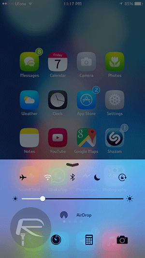 Bước 4: Nhấn nút Home trên iPhone để thoát ứng dụng Camera (ứng dụng vẫn chạy ngầm). Ngay lập tức truy cập vào Control Center và nhấp chọn phím bật đèn pin một lần nữa. Sự kết hợp này sẽ đem lại cho bạn chiếc đèn pin siêu sáng chưa từng thấy.