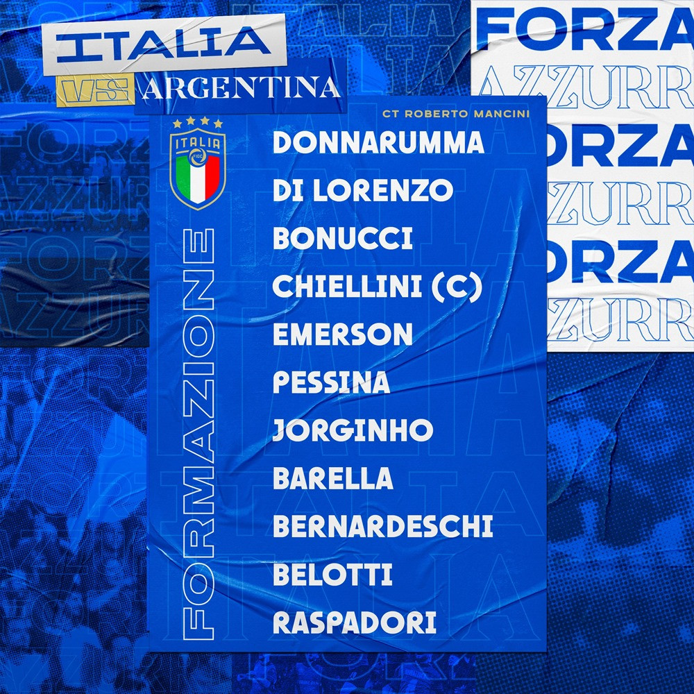 Italy: Donnarumma, Di Lorenzo, Bonucci, Chiellini (Lazzari 46'), Emerson (Bastoni 77'), Barella, Jorginho, Pessina (Spinazzola 62'), Belotti (Scamacca 46'), Bernardeschi (Locatelli 46'), Raspadori