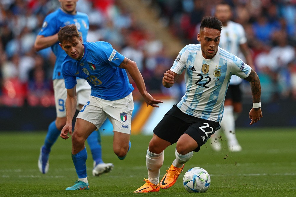 Messi đột phá dũng mãnh trước sự đeo bám của Di Lorenzo trước khi căng ngang như dọn cỗ để Lautaro Martinez dễ dàng làm tung lưới Italy.