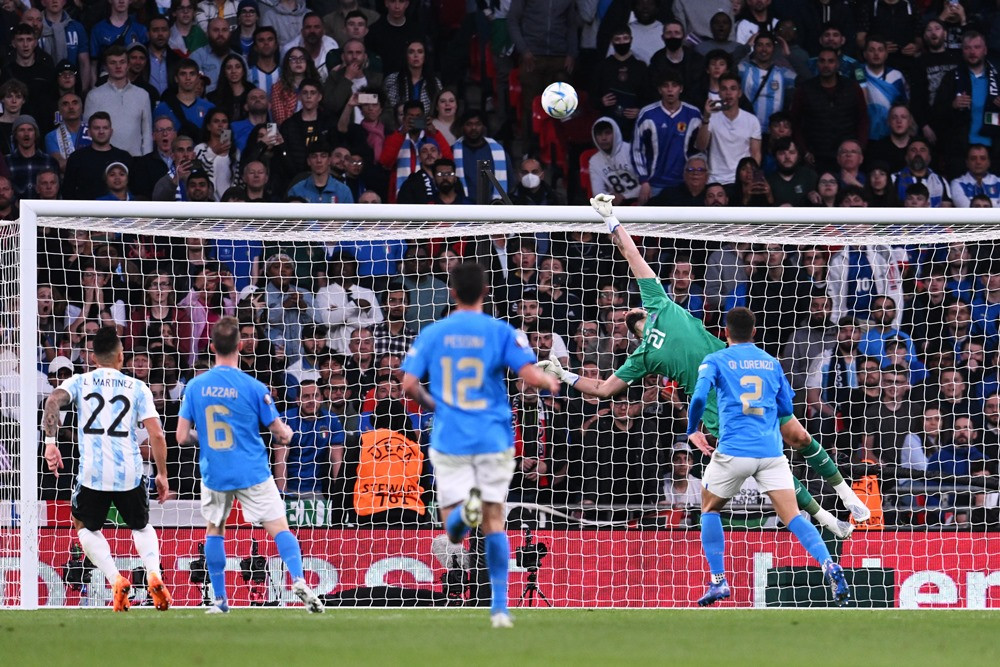 Otamendi phất đường chuyền dài lên cho Di Maria, cầu thủ chạy cánh này dẫn bóng đến sát vòng cấm rồi thực hiện pha cứa lòng quen thuộc buộc Donnarumma phải trổ tài cứu thua cho Italy.
