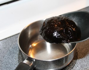 Giai đoạn xào sơ tương.Bắt xoong nhỏ lên bếp. Cho 2 muỗng canh dầu ăn,đợi dầu nóng,cho 2 muỗng canh tương đen jajang+ 1muỗng cafe đường vào xào nhanh tay chừng 30 giây nhắc xuống ngay.