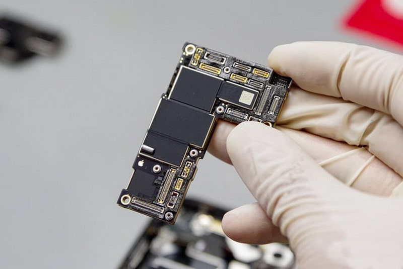 Bo mạch iPhone 12 Pro Max được thiết kế dạng chữ L, phần module sim được thiết kế rời chứ không dính chết vào như iPhone 11 Pro Max
