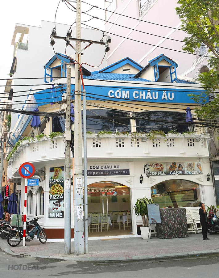 Tọa lạc tại khu trung tâm quận 1 sầm uất, nơi tập trung nhiều hoạt động ăn uống, giải trí sôi động, nhà hàng Cơm Châu Âu vẫn biết cách tạo dấu ấn riêng cho mình với mặt tiền gồm các ô kính trong suốt, nhìn ra góc đường Calmette và Trần Hưng Đạo nhộn nhịp. Lối kiến trúc đậm chất Châu Âu với hai gam màu chủ đạo: trắng sang trọng và xanh phóng khoáng. Ngoài không gian chính, khu vực ngoài trời thoáng đãng, mát mẻ đậm chất Tây cũng được nhiều thực khách ưa chuộng.